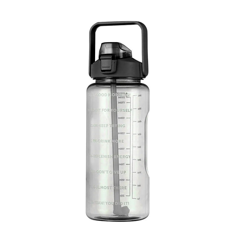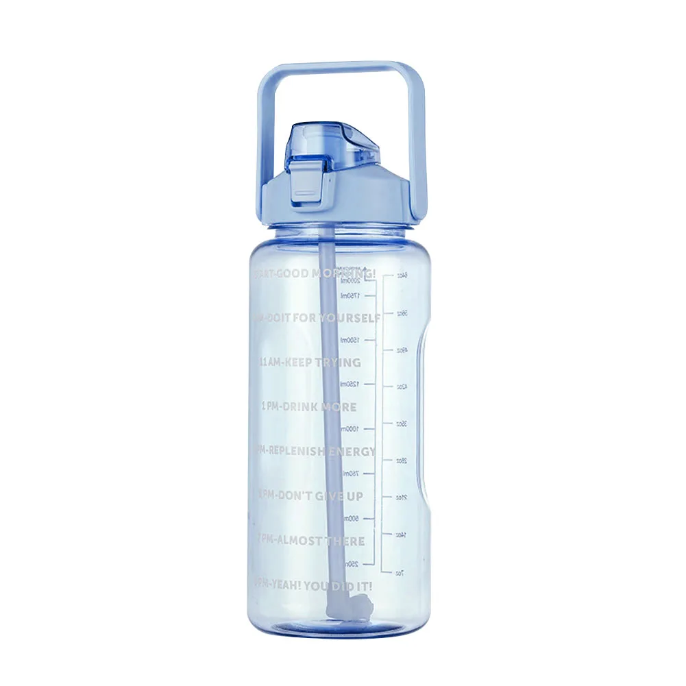 2000ml Sports Water Bottle with Time Marker Fitness Water Bottle Leakproof Durable Large Capacity for Girl Outdoor Camping